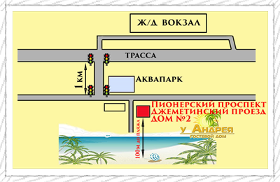 На своем авто: до ж/д вокзала "Анапа" по трассе "Порт-Кавказ - Анапа", поворот на п.Джемете 2 км - до роты ДПС Пионерский проспект, поворачиваете налево и через 200 метров направо в проезд к морю (это и есть проезд Джеметинский). Второе домовладение от угла по левой стороне.